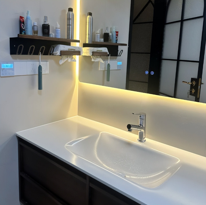 我家在装的时候就是如此,用了几次岩板台盆之后就像将其给扔掉了,因为它并不是一体的设计,再加上存在死角。