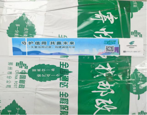 为拓宽征信宣传渠道,人行自贡市分行与邮政部门深度合作,将邮政包裹标签“变身”为征信宣传“前沿阵地”。在数以千计的包裹标签上,印上“天府信用”微信公众号二维码和简洁明了的宣传口号“守护信用 共赢未来——关爱信用记录,构建诚信社会”。让征信知识搭乘包裹“快车”,穿梭于大街小巷,送至千家万户,这些包裹标签就如同一个个“小信使”,将征信知识传递到市民手中,实现征信知识“邮件到家”。