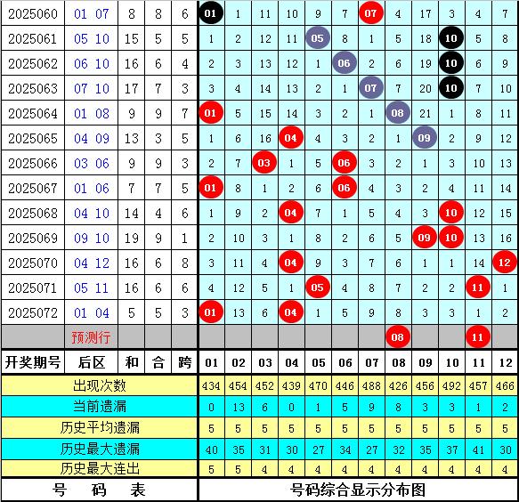 后区号码:上期大号走冷,本期看好大号回补,参考号码:08 11。