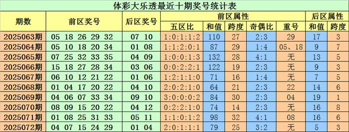 大乐透第2025073期前区分析: