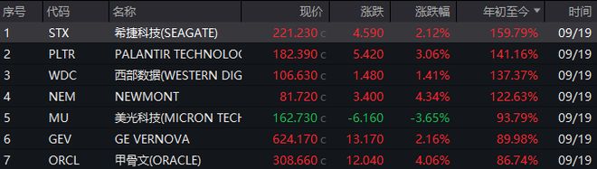 行情数据显示,生产计算机硬盘驱动器的希捷科技,今年成为了标普500指数中表现最佳的股票,股价累计飙升了156%;其竞争对手西部数据公司以137%的涨幅位列第三。再往后看,美国最大内存芯片制造商美光科技公司目前已创纪录的连续12个交易日上涨,2025年迄今的涨幅也达到了93%,位列第五!